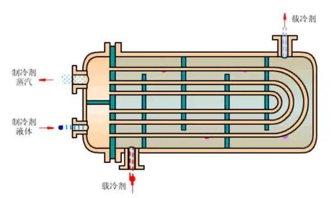 蒸發器的使用需要考慮被冷卻介質的類型,現在市面上主要有兩種:第一種是冷卻空氣的蒸發器,它主要由兩部分組成,分別是冷卻排管、冷風機;第二種是冷卻液體載冷劑的蒸發器。