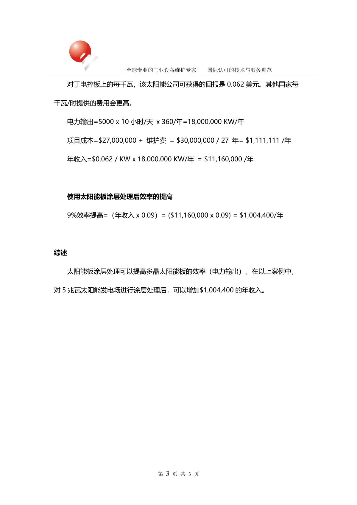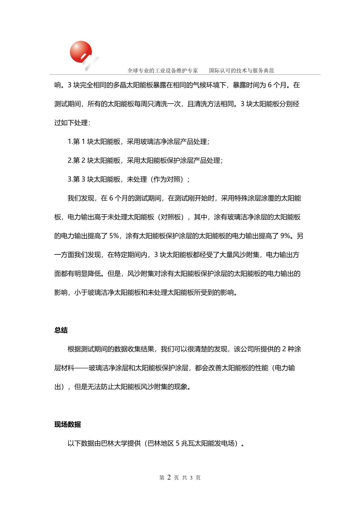 經太陽能板疏水涂層處理過的太陽能板的性能測試報告