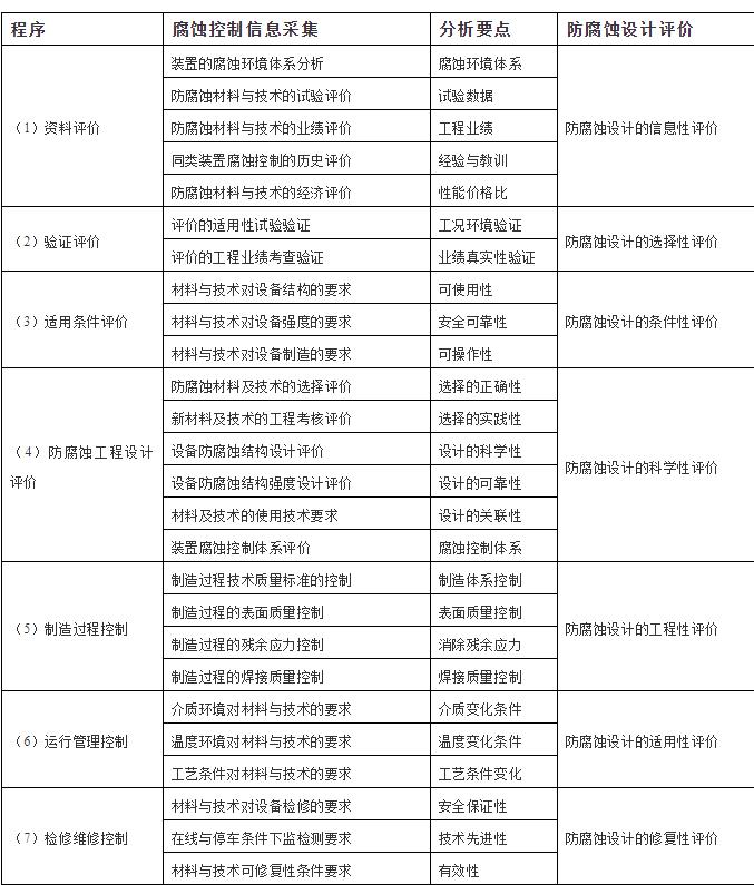 防腐蝕工程設計程序及應給出的評價