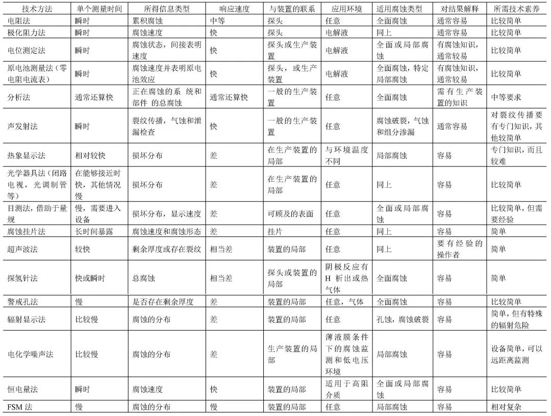 壓力容器腐蝕監(jiān)測各種技術(shù)的特點(diǎn)