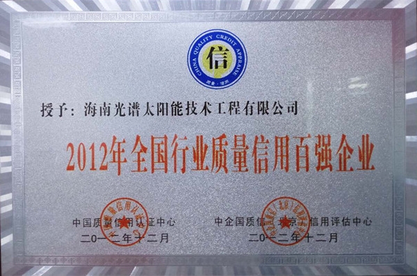 2012年全國行業質量信用百強企業