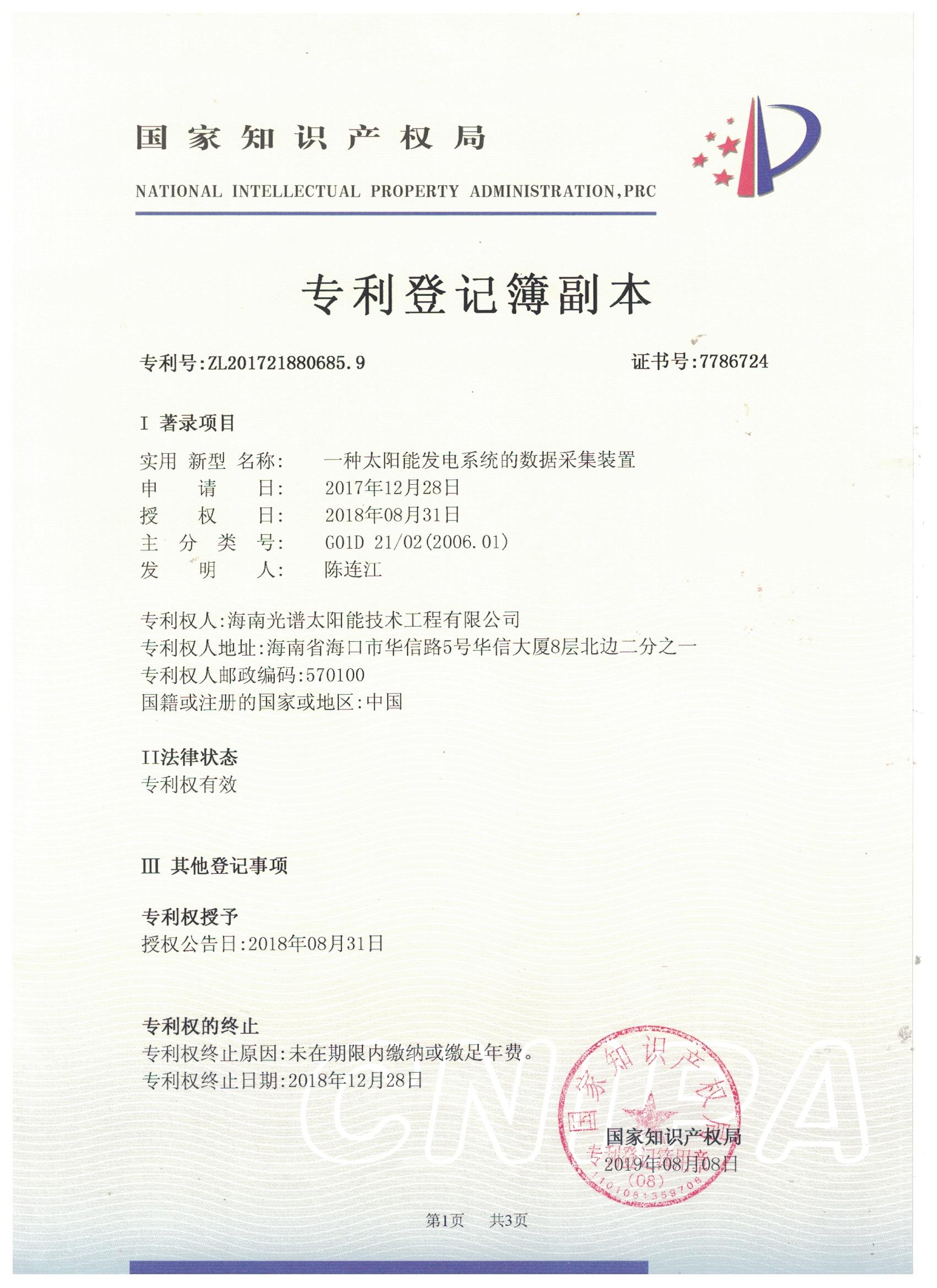 實用新型專利 一種太陽能發電系統的數據采集裝置